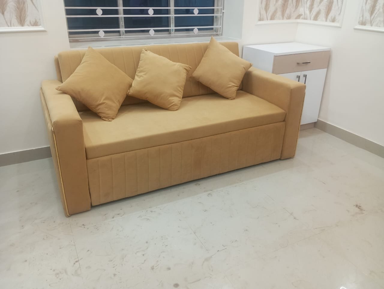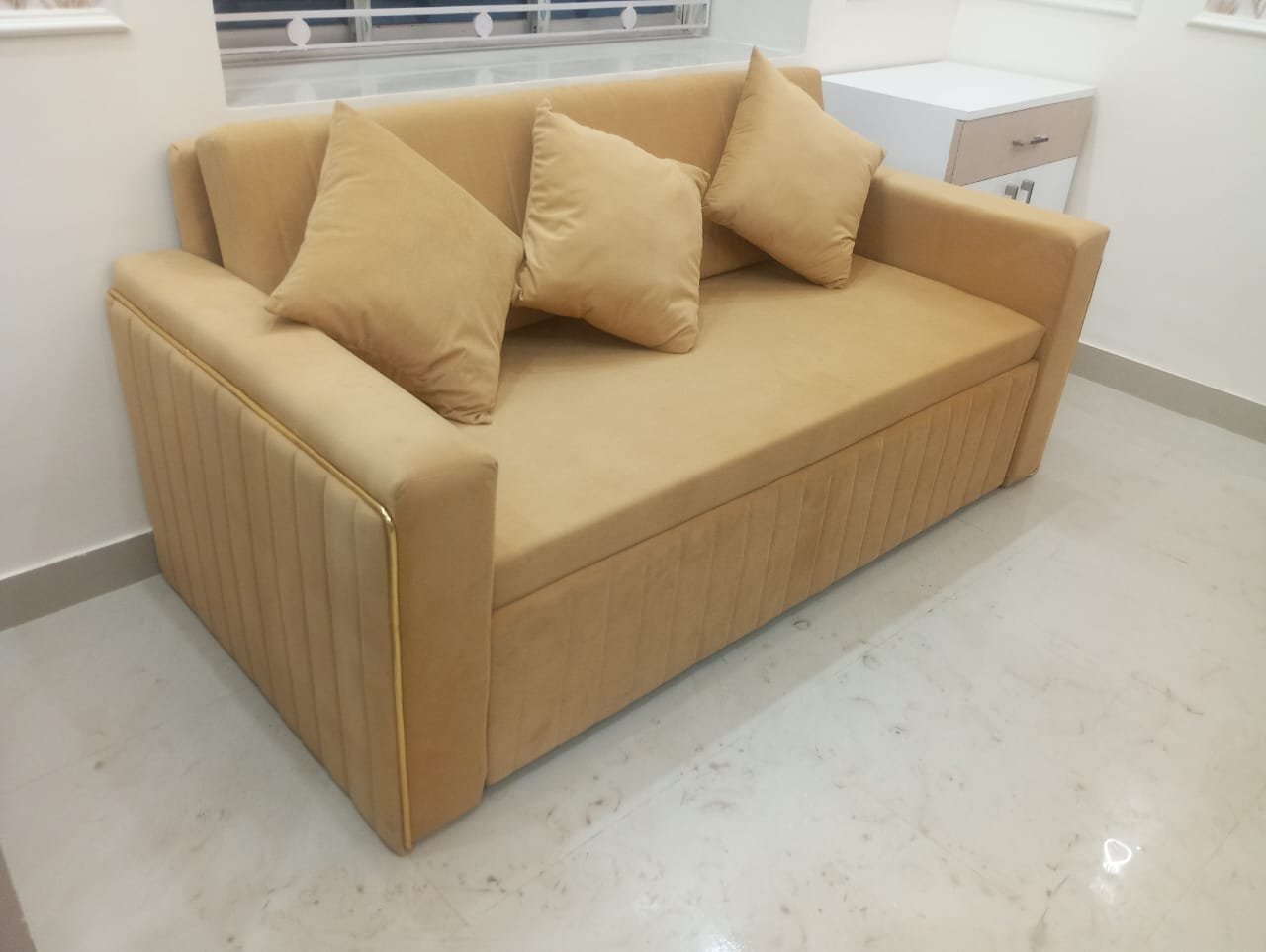 3-Seater Sofa Cum Bed in Beige Premium Velvet Colour